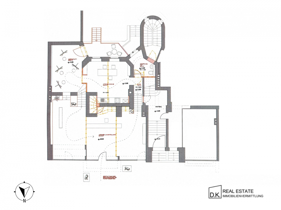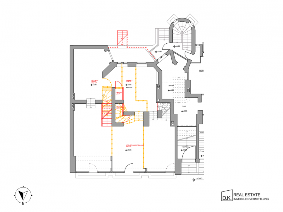 • Deckenhöhe in den vorderen Räumen bis zu ca. 5m