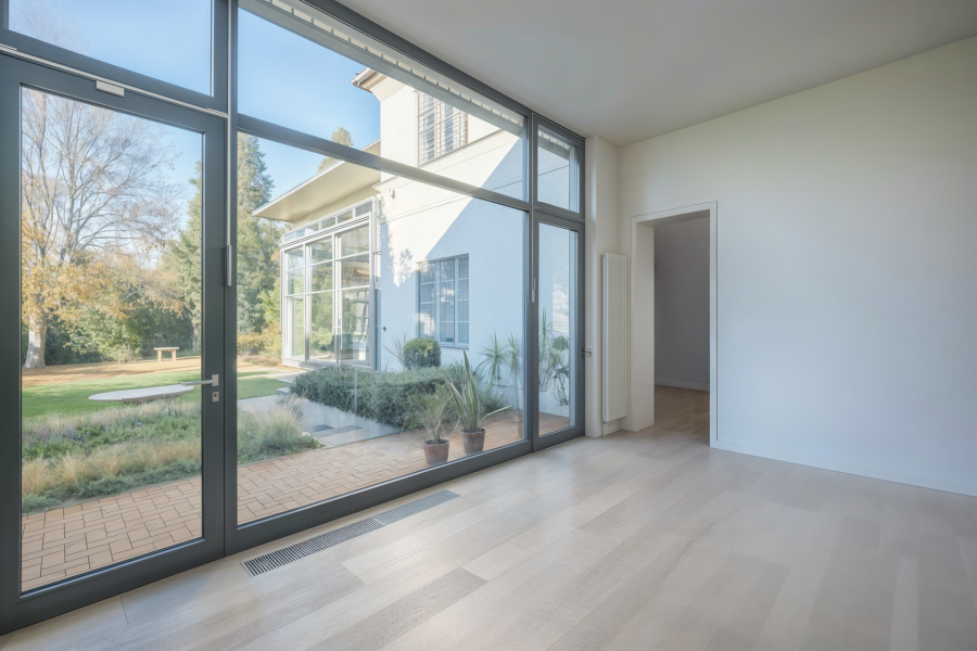 Bereits beim Betreten offenbart sich die besondere Handschrift dieser Immobilie. Der Eingangsbereich beeindruckt mit seiner klaren Linienführung und einem repräsentativen Treppenaufgang, der Tradition und Moderne subtil miteinander verbindet. Helle, hohe Räume, Eichenholzböden und fein abgestimmte Materialien schaffen eine Atmosphäre von Ruhe, Klarheit und Wohnkultur. Die Verbindung zwischen Altbau und Neubau erfolgt über eine lichtdurchflutete Glasgalerie, die durch ihre Offenheit und Transparenz ein besonderes Raumgefühl erzeugt – ein Spiel aus Licht, Perspektive und Architektur. Auf Wunsch lässt sich dieser Verbindungsbereich durch eine Sicherheitstür abschließen oder vollständig trennen, sodass zwei eigenständige Einheiten entstehen.