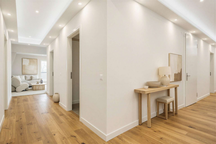 Der hochwertige Dachgeschossausbau wurde im Jahr 2025 realisiert und präsentiert sich als Erstbezug. Die Wohnung überzeugt durch eine klare, zeitlose Architektur, moderne Materialien sowie eine gehobene Gesamtausstattung. Ein Personenaufzug im Gebäude sorgt für komfortablen Zugang bis zur Wohnebene. Die Maisonette erstreckt sich über zwei Ebenen und verfügt über ca. 260 m² Wohnfläche mit insgesamt sieben Zimmern, darunter fünf Schlafzimmer, drei hochwertig ausgestattete Badezimmer sowie ein separates Gäste-WC. Die Raumaufteilung ist großzügig und zugleich funktional gestaltet. Große Fensterflächen, angenehme Deckenhöhen sowie hochwertiges Parkett schaffen eine helle, ruhige Wohnatmosphäre.