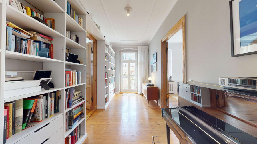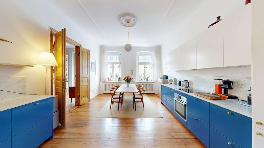 - Altbautypische Elemente: Stuckelemente, gepflegter Dielenboden, hohe Decken, große Fenster