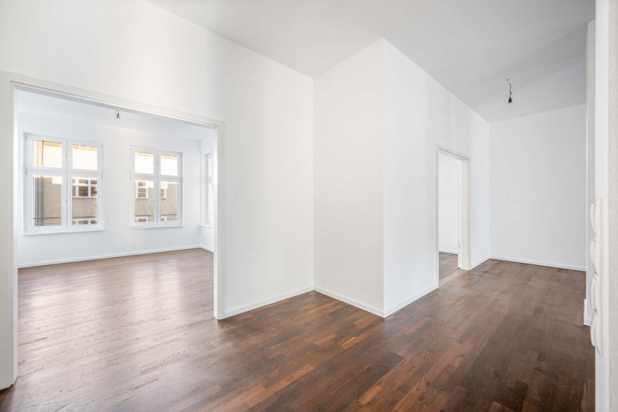 • Hohe Deckenhöhe (3,10 m), helle Räume, große Fensterfronten