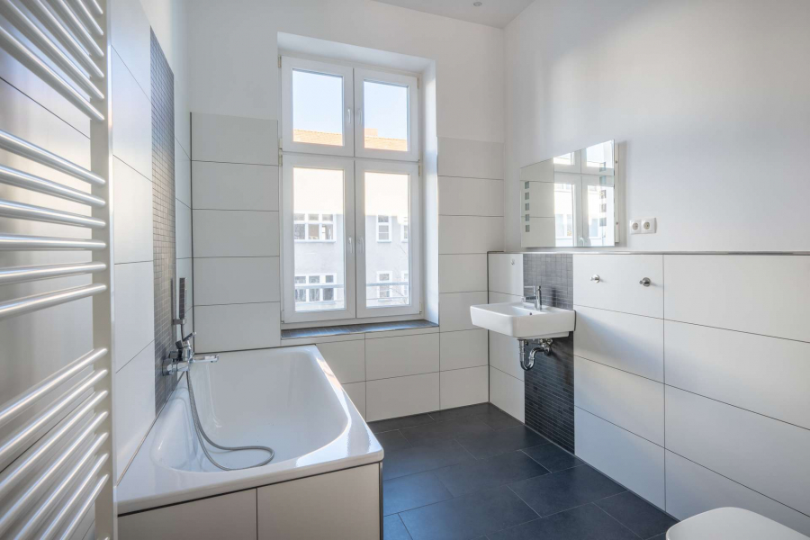 Zwei stilvoll ausgestattete Badezimmer – eines mit Badewanne, das andere mit Dusche – bieten zusätzlichen Komfort und erfüllen sowohl funktionale als auch ästhetische Ansprüche. Ein Abstellraum innerhalb der Wohnung sowie ein separater Kellerraum sorgt für praktischen Stauraum und rundet das Gesamtangebot sinnvoll ab.