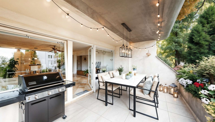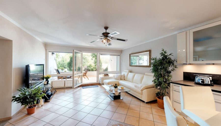 Schon beim Betreten empfängt Sie ein freundlicher Eingangsbereich, von dem aus Sie in das offene Wohnzimmer mit gepflegter Einbauküche gelangen – der ideale Ort für gemeinsames Kochen, gesellige Abende oder entspannte Stunden. Eine der Loggien erweitert den Wohnbereich nach draußen. Dank der großzügigen Wandöffnung strömt Licht durch die Räume und unterstreicht das moderne Loft-Ambiente. Selbstverständlich lässt sich diese Öffnung bei Bedarf auch unkompliziert schließen, falls ein klassischer Grundriss bevorzugt wird.