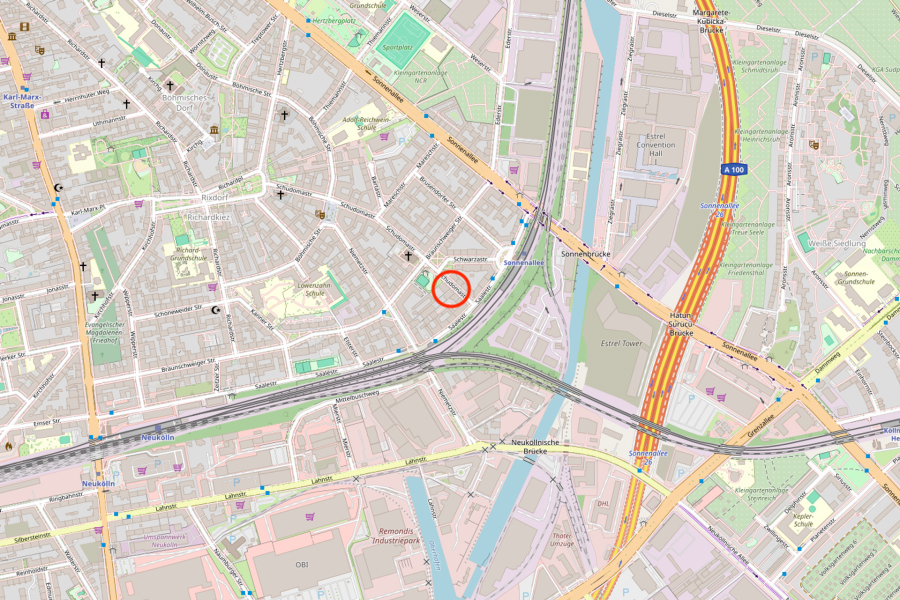 - Lage in Berlin Neukölln, nahe dem S-Bahnhof Sonnenallee